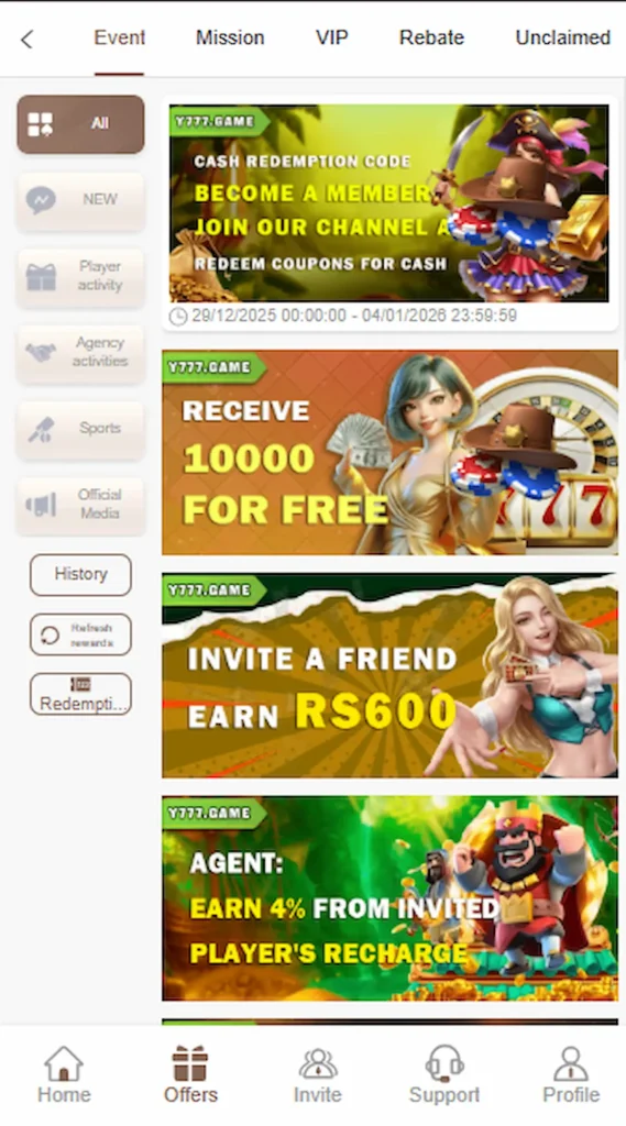 Lottery games are perfect for users who enjoy luck-based games. Y777 earning game includes regular lottery draws where players can participate with small amounts and win big rewards.
